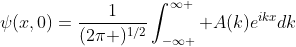 具体的には振幅 \(A(k)\) の平面波 \(A(k)\exp (ikx)\) の連続的な重ね合わせと見て、