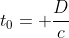 \(t=0\) で物体と観測者の \(x\) 軸方向の距離を \(D\) とし、\(t=0\) で物体を発した光は観測者に \(t=t_{0}\) に届くとします。ここから